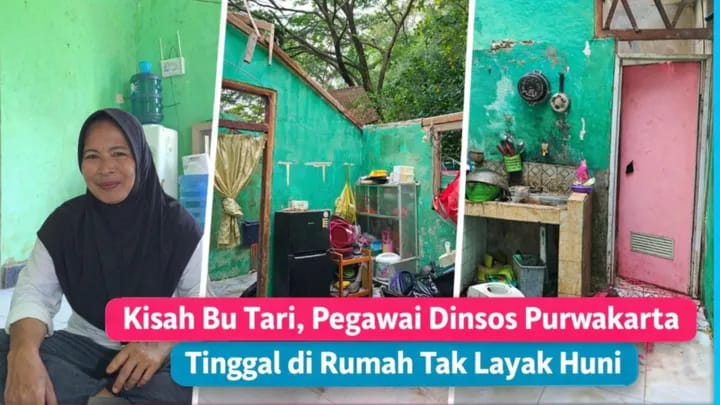 Ironisnya, perempuan yang sering disebut “malaikat penolong” bagi masyarakat kecil itu justru hidup di rumah yang kondisinya jauh dari kata layak. Bu Tari merupakan tenaga lapangan di Dinas Sosial Kabupaten Purwakarta, tepatnya di Bidang Perlindungan Jaminan Sosial (Linjamsos).