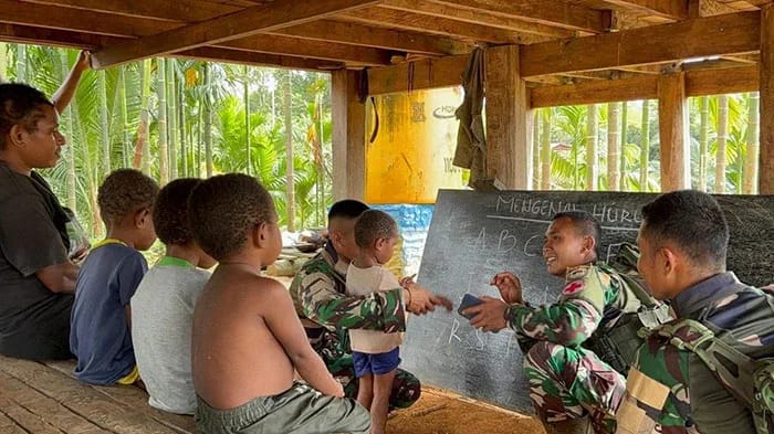 “Banyak anak di kampung itu belum mengenal huruf dan angka, sehingga TNI turun langsung memberikan pelatihan dasar secara rutin,” tutur Boy Kristian dalam keterangannya.
