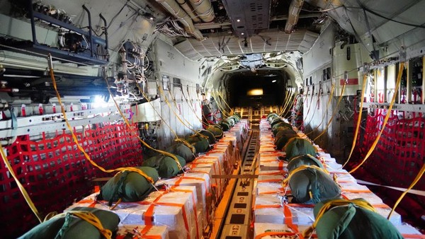 Dalam keterangan resmi Puspen TNI, Minggu (17/8/2025), bantuan itu diangkut dua pesawat Hercules C-130J TNI AU dari Skadron Udara 31, dengan 66 personel gabungan. Bantuan ini beroperasi di bawah komando Komandan Wing I Lanud Halim Perdanakusuma, Kolonel Pnb Puguh Julianto selaku Mission Commander.