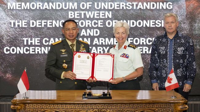 MoU ditandatangani Kepala Staf Pertahanan Kanada Jenderal Jennie Carignan saat berkunjung ke Indonesia, Senin (25/8/2025). Kesepakatan ini memperkuat kolaborasi militer kedua negara, khususnya di bidang keamanan maritim, latihan bersama, hingga pengembangan kapasitas pertahanan.