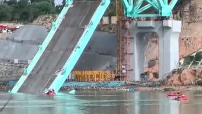 Insiden kecelakaan terjadi di proyek pembangunan jembatan di Provinsi Qinghai, China, pada Jumat (22/8/2025).